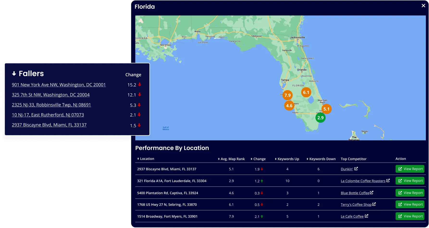 - Easily identify problem locations and top competitors.