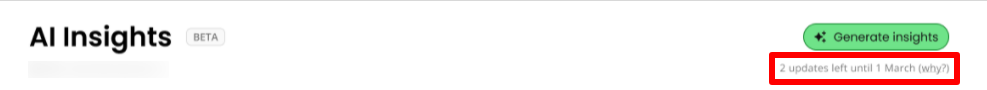This allowance refreshes on the 1st of each month. We recommend allowing two weeks between updates so that AI Insights can analyze your recent reports to deliver the best insights and recommendations.